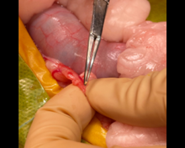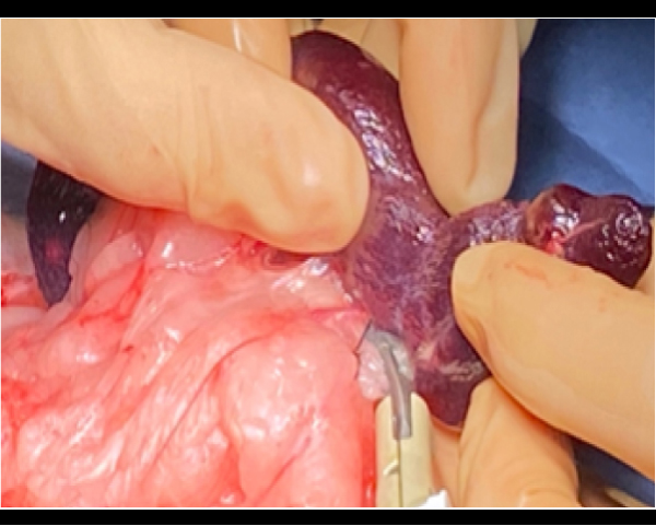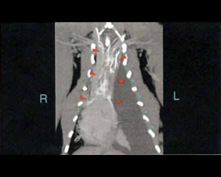 必ず、反対側の胸管も確認できるところまで剥離します。(黒矢印)