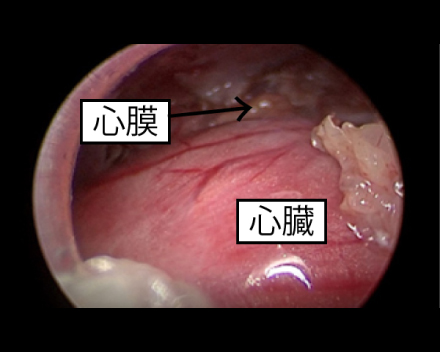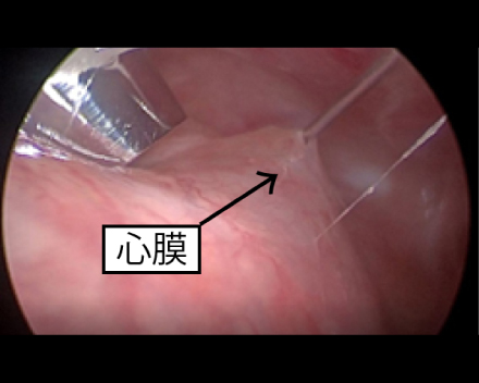 心膜の一部を吊り上げて心膜と心臓の間にスペースを作ります
