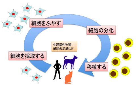 再生医療、それは薬でもなく、手術でもなく、患者自身(自家)あるいは他の健康な子(他家)の細胞を用い患者自身の自己治癒能力を増幅する治療法です。