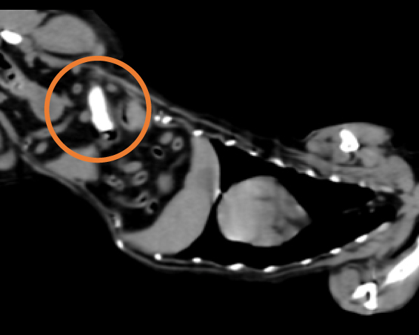 内視鏡の位置をCアームで確認し正確に場所の把握が可能