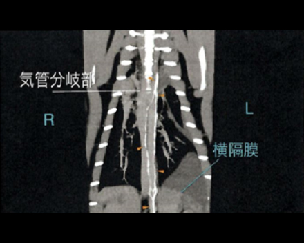 必ず、反対側の胸管も確認できるところまで剥離します。(黒矢印)